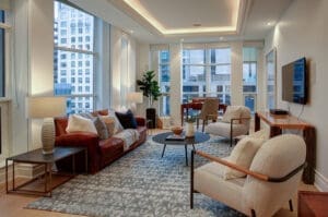 “One of the unique things about this building is that no two units are alike,” he says. “They vary by size and exposure and city view or parkland.”