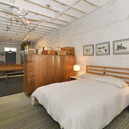 Calling all urban dwellers who embrace a lifestyle and an appreciation for the unique Queen/Ossington neighborhood. Currently configured as a 2-storey loft-style single family home, this laneway house would make an ideal live-in/work space. Upon entry, one is greeted by the soaring 11 ft. beamed ceilings, open expansive space, concrete heated floors, and large picture windows. Access to a private stone patio adds a je ne sais quoi with a European flair. The powder room and laundry area, tucked away behind hanging doors, complete this level. Upstairs, the space is flanked by a gas fireplace and open rooms offering a sightline from the front to the back of the loft. A Juliette balcony allows the fresh air to stream in while the walk-out to a sun deck provides outdoor enjoyment.